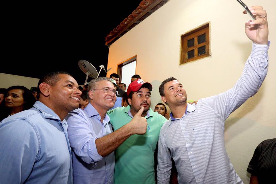 Senador Renan faz selfie com eleitores no município de Carneiros. (foto: Marcos César)