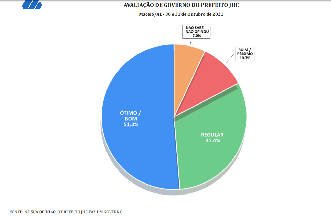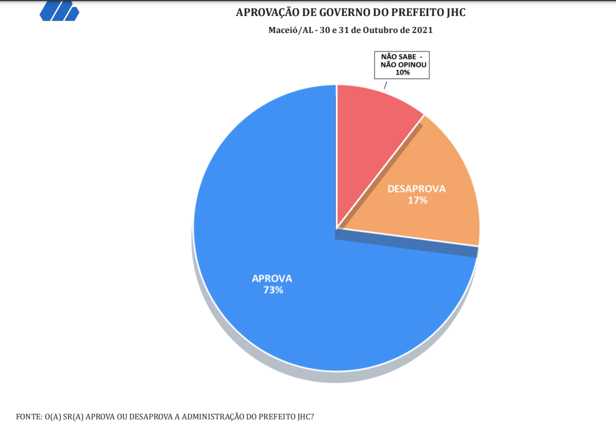 Pelos números do DataSensus JHC tem a administração aprovada por 73% dos maceioenses, contra 17% que desaprovam e 10% que não opinaram.
