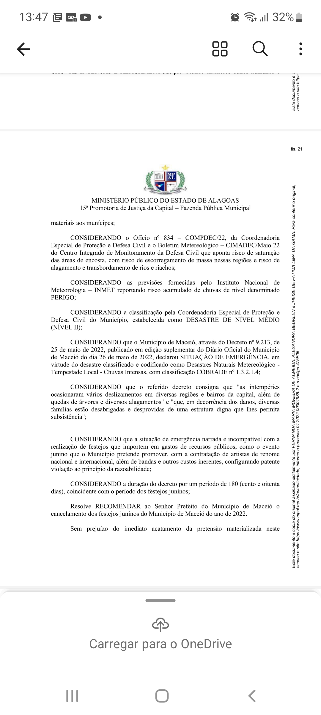 Veja o documento do MPE