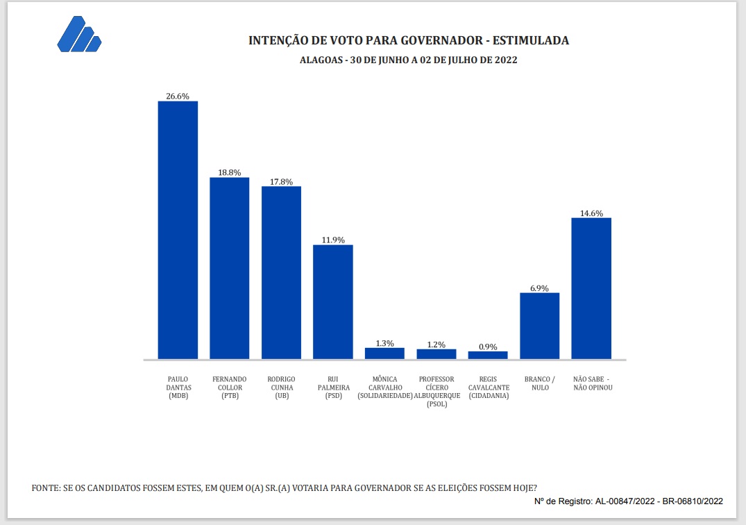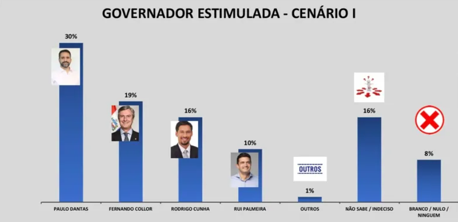 As duas pesquisas (DataSensus e Ibrape), das cinco previstas para esta semana (faltam TDL, Big Data e Paraná), colocam Paulo Dantas na liderança, com Collor em segundo. Rodrigo Cunha e Rui Palmeira, que apareciam em 1º e 2º, até então, caíram para 3º e 4º (pelo menos nas duas amostras.