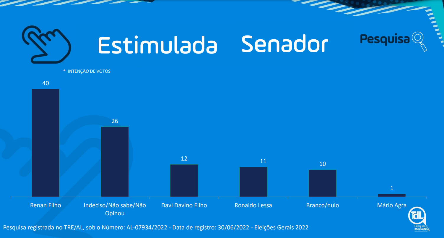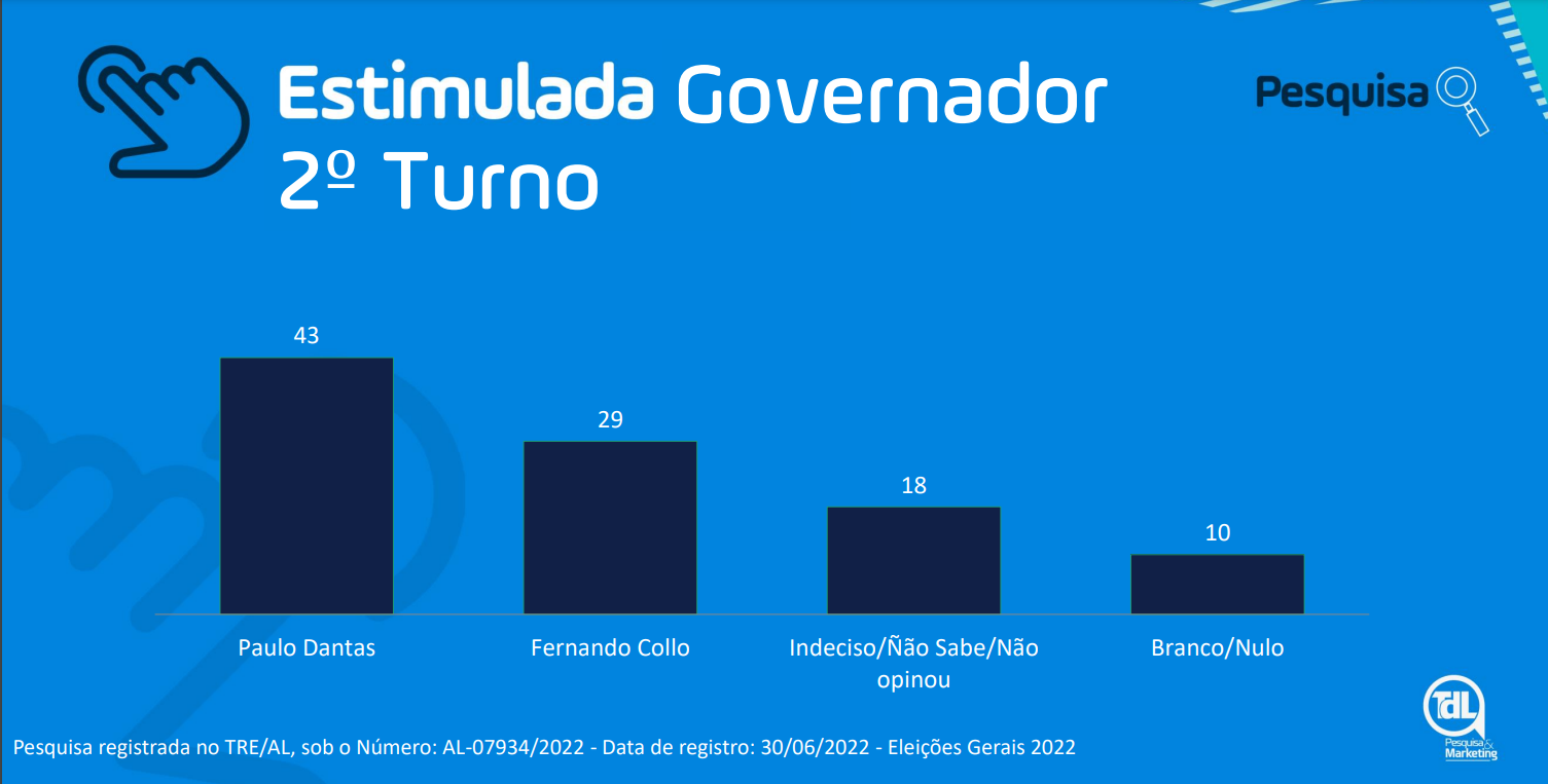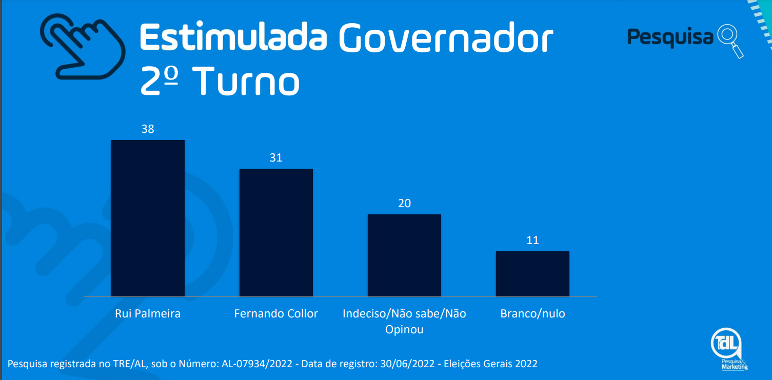 O TDL ouviu 1067 eleitores, entre os dias 02 a 04 de Julho. A margem de erro é de 3% e o intervalo de confiança de 95%. A pesquisa está registrada no TRE-AL, sob número AL07934/2022.