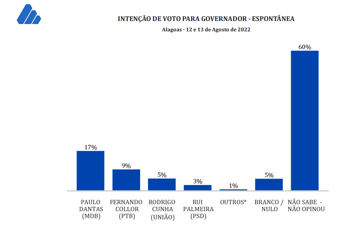 60% dos 5.072 entrevistados pelo DataSensus disseram não saber ou não quiseram afirmar em quem votar para governador de Alagoas. Os especialistas do ramo defendem que a pergunta espontânea é determinante num início da corrida eleitoral, porque demonstra a real percepção do eleitor, sem que nenhum nome tenha sido citado.