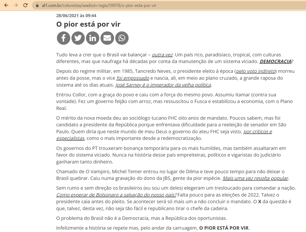 Infelizmente a história se repete, mas, pelo andar da carruagem, O PIOR ESTÁ POR VIR.