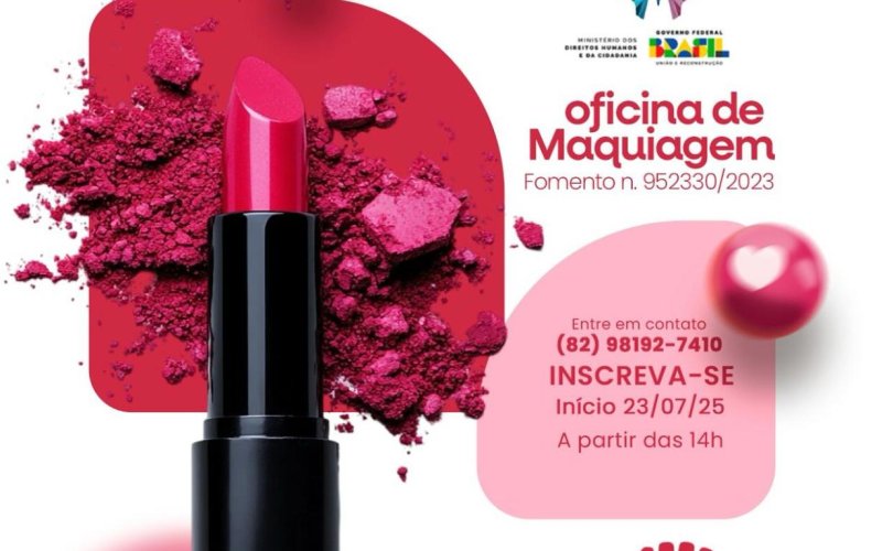 A oficina será conduzida pela instrutora Lysia Flávia: “Vamos trabalhar técnicas de maquiagem para diferentes tipos de pele e formatos de rosto, contornos e correções, olhos marcantes e makes para o dia a dia. Também teremos espaço para explorar maquiagens artísticas, aliando prática e criatividade, sempre com foco na valorização de cada participante e na possibilidade de atuação profissional no mercado da beleza”, explica. As aulas começam nesta quarta-feira, 23, no espaço Ly Studio & Academy, localizado na Rua 04, nº 68 B – Bairro do Feitosa, com aulas presenciais semanais às quartas e quintas-feiras, a partir das 14h.